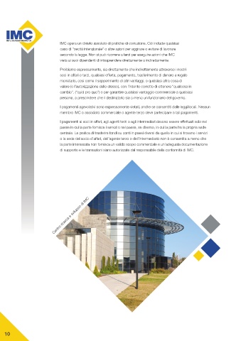 IMC opera un divieto assoluto di pratiche di corruzione. Ciò include qualsiasi