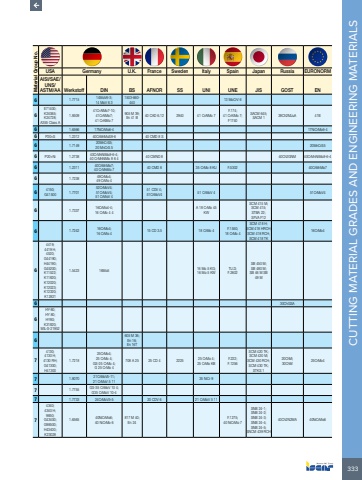 333CUTTING MATERIAL GRADES AND ENGINEERING MATERIALS Material Group No.USA Germany U.K. France Sweden Italy Spain Japan Russia EURONORMAISI/SAE/UNS/ASTM/AA Werkstoff DIN BS AFNOR SS UNI UNE JIS GOST EN6 1.7715 14MoV6-3;14 MoV 6 31503-660-440 13 MoCrV 66E71400;K24065;K24728;A355 Class A1.850941CrAlMo7-10;41CrAlMo7;41 CrAlMo 7905 M 39;En 41 B 40 CAD 6.12 2940 41 CrAlMo 7F.174;41 CrAlMo 7;F1740SACM 645;SACM 1 38Ch2MJuA 41B6 1.6566 17NiCrMo6-4 17NiCrMo6-46 P20+S 1.2312 40CrMnMoS8-6 40 CMD 8 S6 1.7149 20MnCrS5;20 MnCrS 5 20MnCrS56 P20+Ni 1.2738 40CrMnNiMo8-6-4;40 CrMnNiMo 8 6 4 40 CMND 8 40Ch2GNM 40CrMnNiMo8-6-46 1.2311 40CrMnMo7;40 CrMnMo 7 40 CMD 8 35 CrMo 8 KU F.5302 40CrMnMo76 1.7238 49CrMo4;49 CrMo 46 4150;G41500 1.770152CrMoV4;51CrMoV4;51 CrMoV 451 CDV 4;51CrMoV4 51 CrMoV 4 51CrMoV46 1.7337 16CrMo4-4;16 CrMo 4 4A 18 CrMo 45 KWSCM 415 M;SCM 415;STBA 22;SFVA F126 1.7242 16CrMo4;16 CrMo 4 15 CD 3.5 18 CrMo 4 F.1550;18 CrMo 4SCM 418 H;SCM 418 HRCH;SCM 418 RCH;SCM 418 TK16CrMo464419;4419 H;4520;G44190;H44190;G45200;K11522;K11820;K12020;K12023;K12320;K128211.5423 16Mo5 16 Mo 5 KG;16 Mo 5 KWTU.D;F.2602SB 450 M;SB 480 M;SB 46 M SB 49 M6 30ChGSA6HY-80;HY 80;HY80;K31820;MIL-S-219526605 M 36;En 16;En 16T74130;4130 H;4130 RH;G41300;H413001.721825CrMo4;25 CrMo 4;GS-25 CrMo 4;G 25 CrMo 4708 A 25 25 CD 4 2225 25 CrMo 4;25 CrMo KBF.222;F.1256SCM 420 TK;SCM 430 M;SCM 430 RCH;SCM 430 TK;STKS 120ChM;30ChM 25CrMo47 1.8070 21CrMoV5-11;21 CrMoV 5 11 35 NiCr 97 1.7755 GS-35 CrMoV 10 4;G35 CrMoV 10-47 1.7733 24CrMoV5-5 20 CDV 6 21 CrMoV 5 1174340;4340 H;9850;G43400;G98500;H43400;K230281.6565 40NiCrMo6;40 NiCrMo 6817 M 40;En 24F.1275;40 NiCrMo 7SNB 24-1;SNB 24-2;SNB 24-3;SNB 24-4;SNB 24-5;SNCM 439 RCH40Ch2N2MA 40NiCrMo6