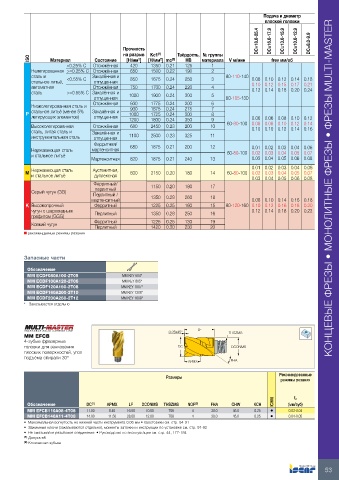 перлитный 1150 0.20 180 17 КОНЦЕВЫЕ ФРЕЗЫ • МОНОЛИТНЫЕ ФРЕЗЫ • ФРЕЗЫ MULTI-MASTER