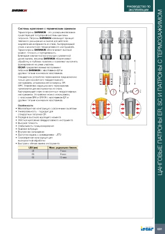 быстрорежущей стали и монолитных твердосплавных 300˚ c T.I.R ЦАНГОВЫЕ ПАТРОНЫ ER, SC И ПАТРОНЫ С ТЕРМОЗАЖИМОМ