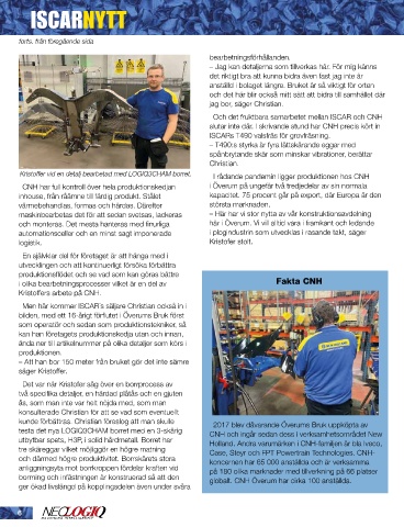Kristoffer vid en detalj bearbetad med LOGIQ3CHAM borret. I rådande pandemin ligger produktionen hos CNH