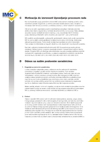 IMC podstiče razvoj kolegijalnih, uvažavajućih i profesionalnih odnosa među svojim zaposlenima.